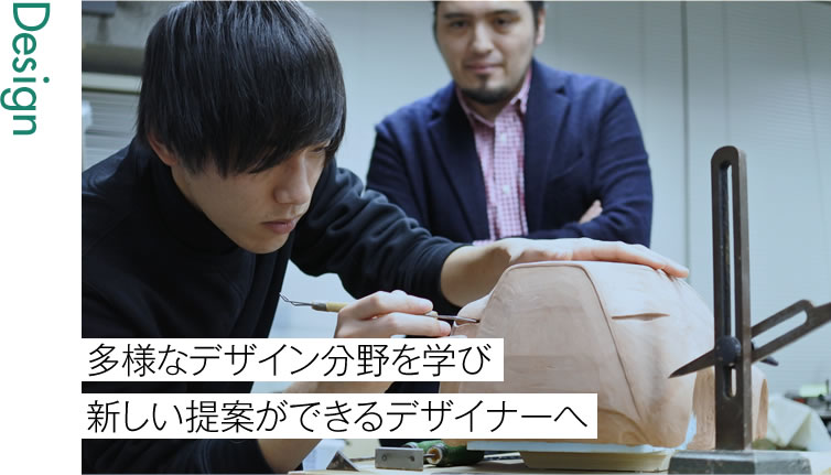 プロダクト、クラフト、インテリア、メディア、社会など、世の中のあらゆるものはデザインされています。デザイン学科では、工学的な視点や技術を取り入れた多彩なデザイン力を身につけ、人々の暮らしをより豊かにできるプロを育成します。